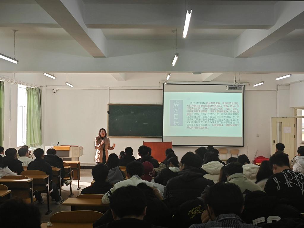 近日,为推进空中乘务、旅游管理专业岗位实习的顺利开展,现代服务系在创业楼318召开实习动员大会。此次大会旨在激励空中乘务(联办)、旅游管理专业的学生们积极投入即将到来的实习中,并明确实习期间的安全、纪律及各项要求。