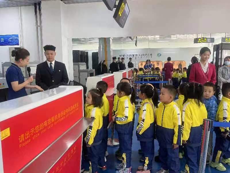 4月29日下午,九原区第二幼儿园近30名小朋友在老师和家长的带领下走进现代服务系空乘模拟舱实训基地,开展了“筑梦飞翔”社会实践研学活动。